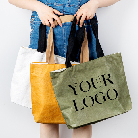 Sac en papier écologique lavable en Tyvek Dupont pour courses, réutilisable et imperméable, avec logo personnalisé